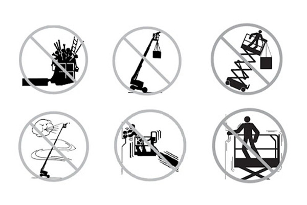 答:在不平地面支车。再小的坡度也能让车不稳,尤其当臂伸出或平台升高时。上去之前一定检查水平。