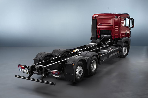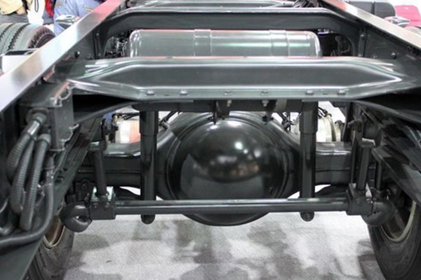 卡车大梁是梯形车架,两根长钢轨从前往后,中间有横梁连着。这是骨架,所有东西都挂在这上面。