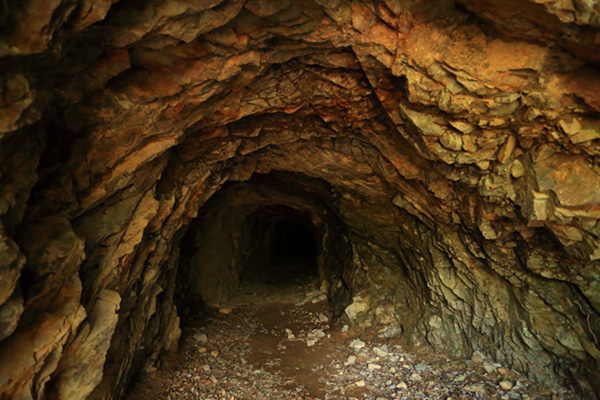地下开采是深的。下去找,巷道、竖井、矿房、矿柱——地底下跟座城似的。