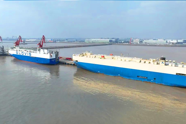 这是整台车最常见的海运方式。车直接开上船,停好,一直到船到港。