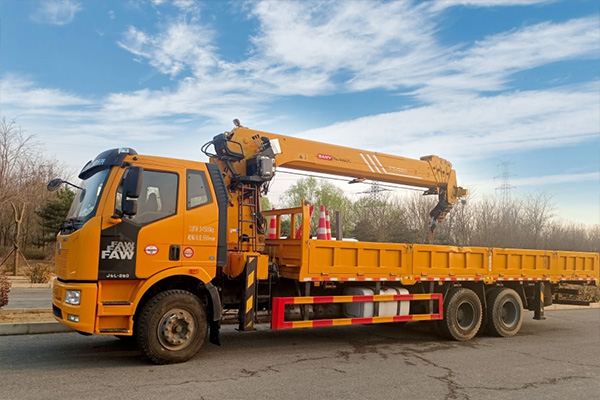 随车吊有不同回转角度——180度或者360度,要在车周围干活,选360度。主要是从后面装卸,180度够用了。
