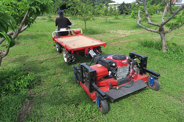 配个拖车,带轮子、能挂在割草机后面的那种,然后让机器替你干活。
