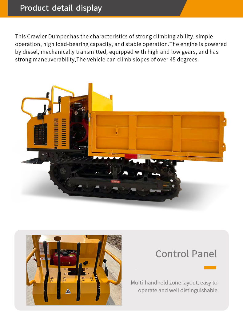 该履带式自卸车具有爬坡能力强、操作简便、承载量大、运行稳定等特点。