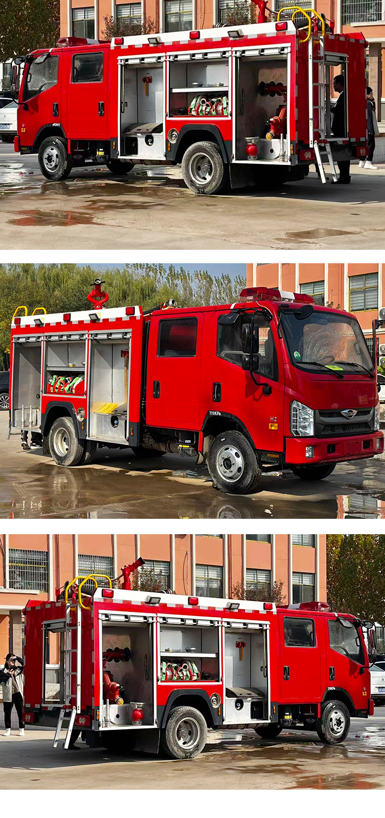 • 福田 H2 洒水消防车 —— 全新 4×2 柴油驱动,罐体容积 3001-5000 升,多功能街道救援作业车