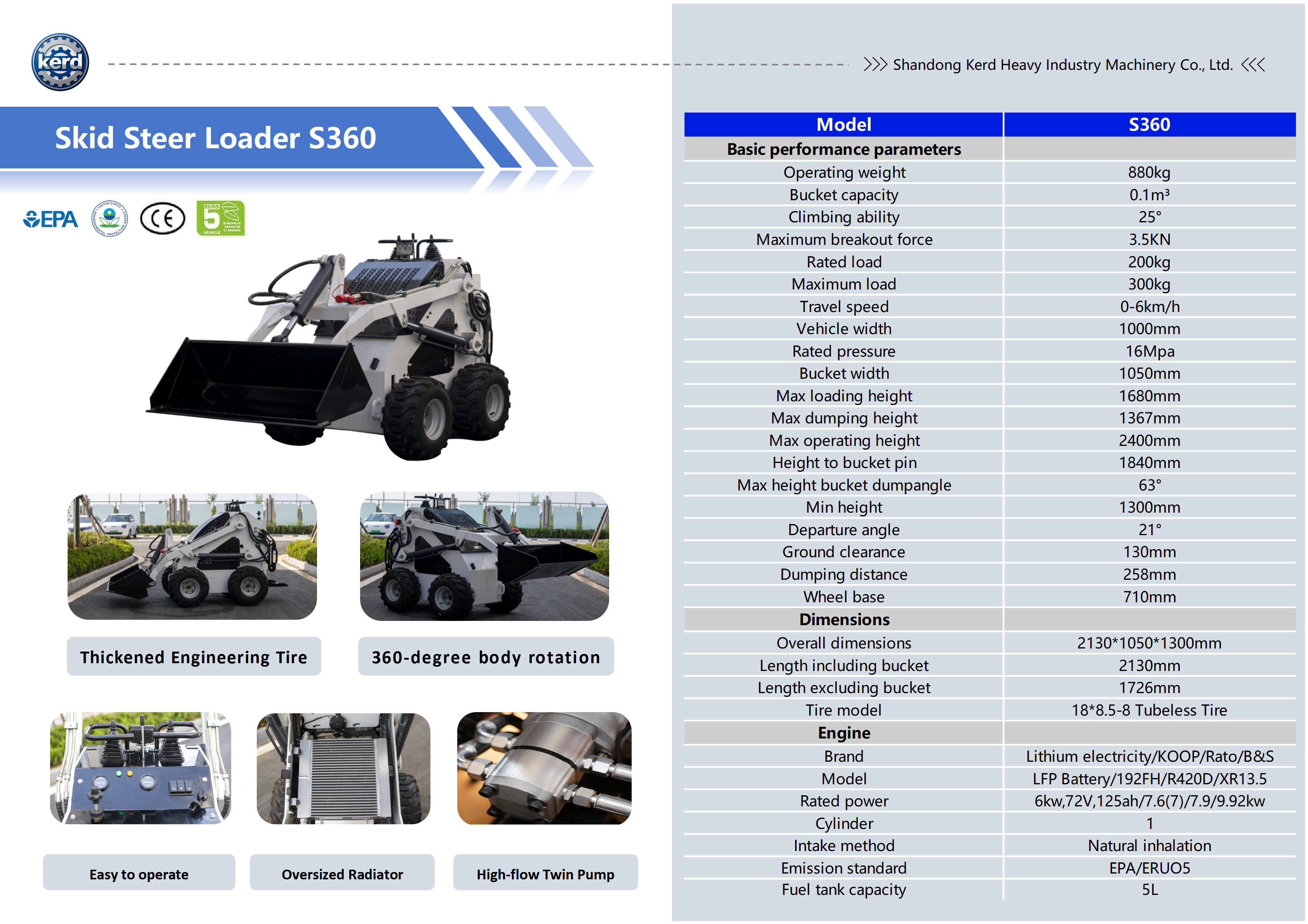S360 滑移装载机是一款集成先进液压与动力系统的紧凑型多功能迷你装载机,具备 360° 机身旋转与窄体设计,非常适合园林、工地、室内改造等狭小空间作业。通过 EPA 与 CE 认证,符合国际出口标准,为小型土方、物料搬运及园林绿化任务提供可靠性能。